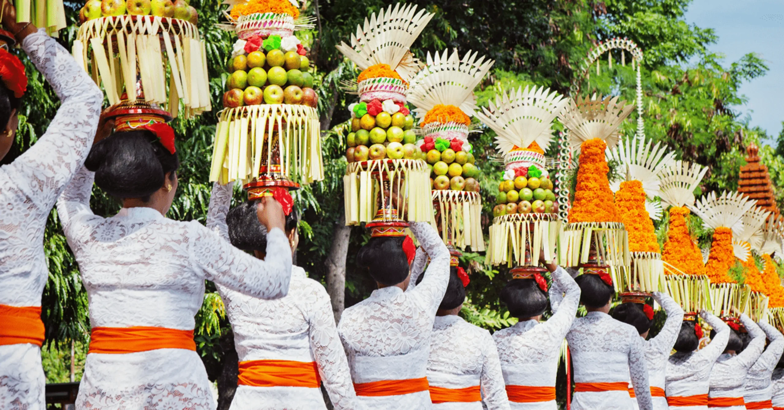 Temples become the heart of community life. Dressed in white and gold ceremonial attire, Balinese families gather to pray, make offerings, and express gratitude for harmony and protection.